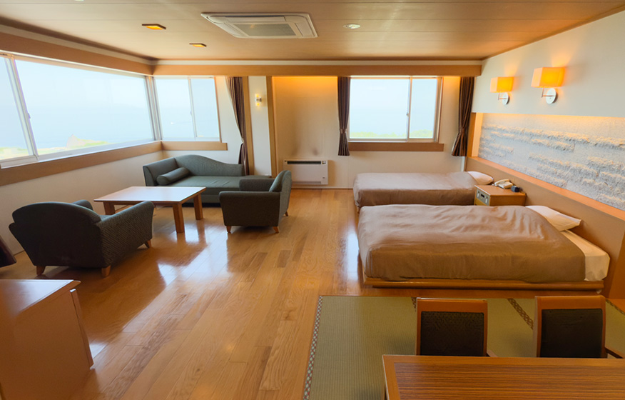 オホーツク海を一望できるお部屋では、朝日や夕焼け、四季折々の景色に包まれ、自然の中で至福のひとときをお楽しみいただけます。