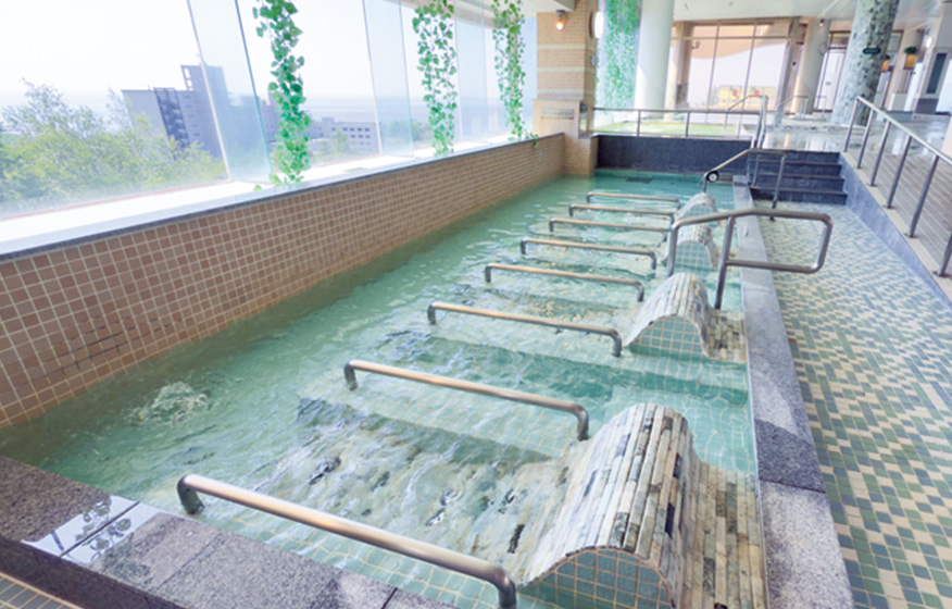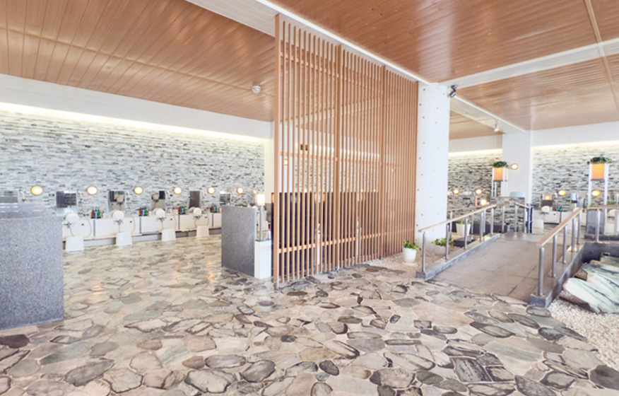 ロシア語で森を意味するローシャには、緑の植栽とともにさまざまな湯があるとともに、床材に翡翠(ひすい)を使用し、心からのリラックス時間をお約束します。広々としたパウダールームも完備しております。